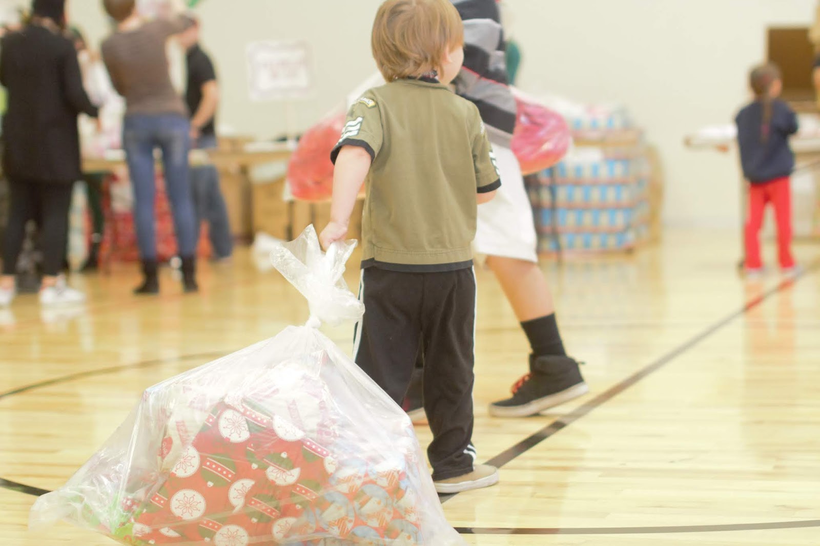 All of the kids that come to this party get a bag of gifts! Every bag has a made blanket, a book and a stuffed animal along with 3-5 really fantastic gifts that are all individually wrapped. With this being the only holiday event the kids will get we strive to make is magically wonderful.